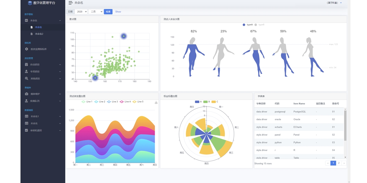 基于自主研發(fā)數(shù)據(jù)采集和治理平臺(tái),形成數(shù)字化醫(yī)院管理數(shù)據(jù)中心,為職能管理人員提供三級(jí)醫(yī)院評(píng)審指標(biāo)、績(jī)效考核指標(biāo)、質(zhì)控管理指標(biāo)等功能;通過商務(wù)智能(BI)分析技術(shù),為醫(yī)院領(lǐng)導(dǎo)層提供決策支持。